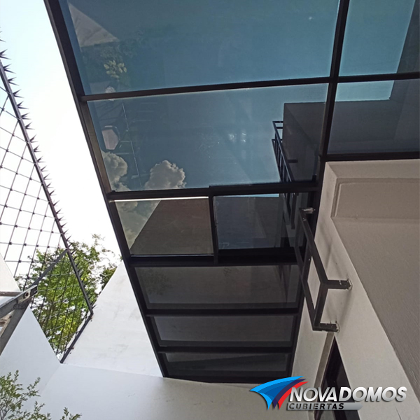 Ofrecemos el servicio de suministro e instalación de cubiertas de Vidrio Templado con estructura de acero, este tipo de cubiertas es de lo más estético para su uso en áreas a la vista.