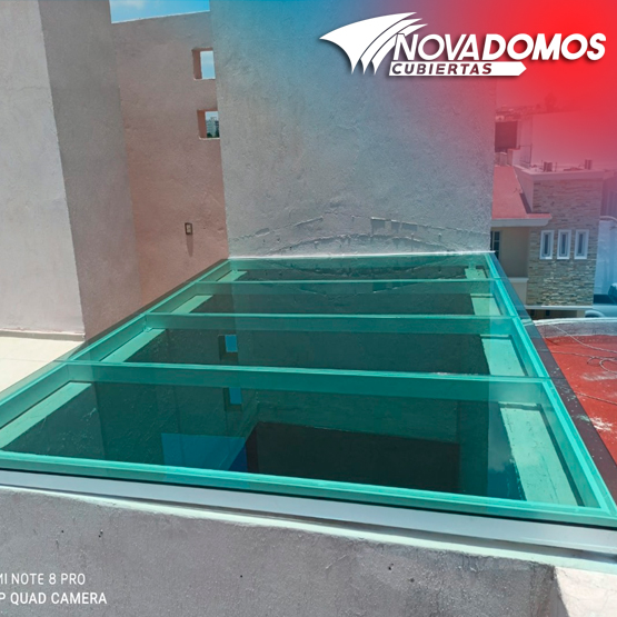 Contactar 33-1702-3973Ofrecemos el servicio de suministro e instalación de cubiertas de Vidrio templado este tipo de cubiertas es de lo más estético para su uso en áreas a la vista en donde se desee cubrir, además se puede mejorar la funcionalidad del vidrio con la aplicación de películas para el control solar, privacidad y seguridad. En Novadomos tenemos amplia experiencia con el vidrio templado diseñando y desarrollando proyectos desde cero. Es decir, desde la planeación en proyecto ejecutivo, planos, renders, desglose de materiales y desarrollo en la obra. El vidrio templado es el producto que se obtiene al someter un vidrio a un proceso térmico para conseguir que sus propiedades mecánicas mejoren. El vidrio obtenido de este proceso térmico tiene una resistencia cinco veces mayor que la del vidrio original. Lo que lo convierte en el producto ideal para su uso en domos y cubiertas. Es un vidrio seguro ya que de estrellarse este estalla en pedazos pequeños que resultan inofensivos al corte.